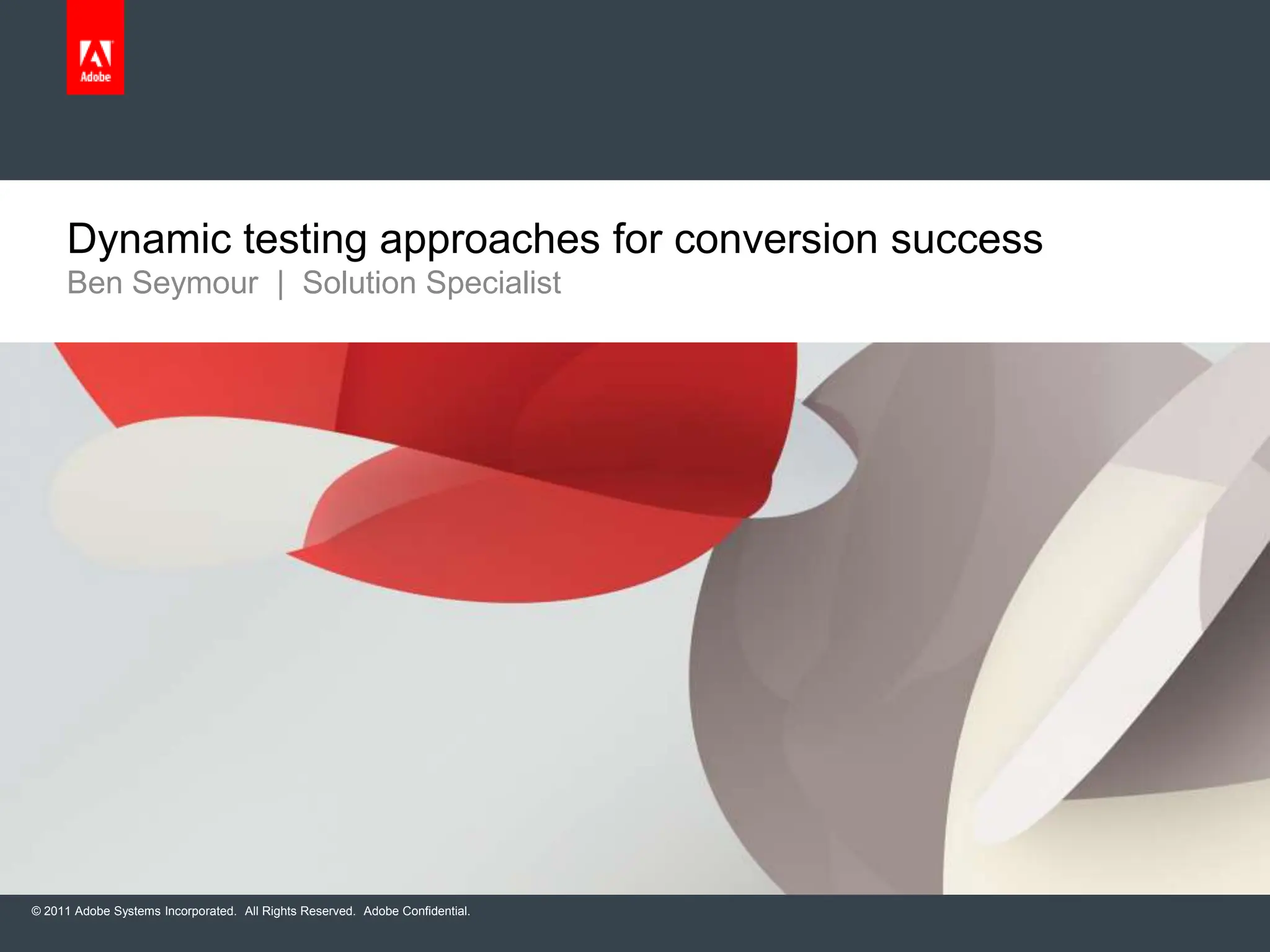 for conversion success Ben Seymour | Solution Specialist © 2011 Adobe Systems Incorporated. All Rights Reserved. Adobe Confidential.