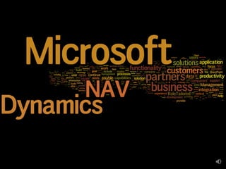 The document provides an overview and roadmap for Microsoft Dynamics NAV. It discusses upcoming features for NAV 2009 R2 including integration with CRM, an internet-accessible RoleTailored Client, and enhanced reporting. It outlines the roadmap for future NAV versions through 2016-2017 with a focus on simplicity, productivity and the Microsoft technology stack. Alternative reporting and budgeting options like Jet Reports, Management Reporter, and Forecaster are also reviewed.
