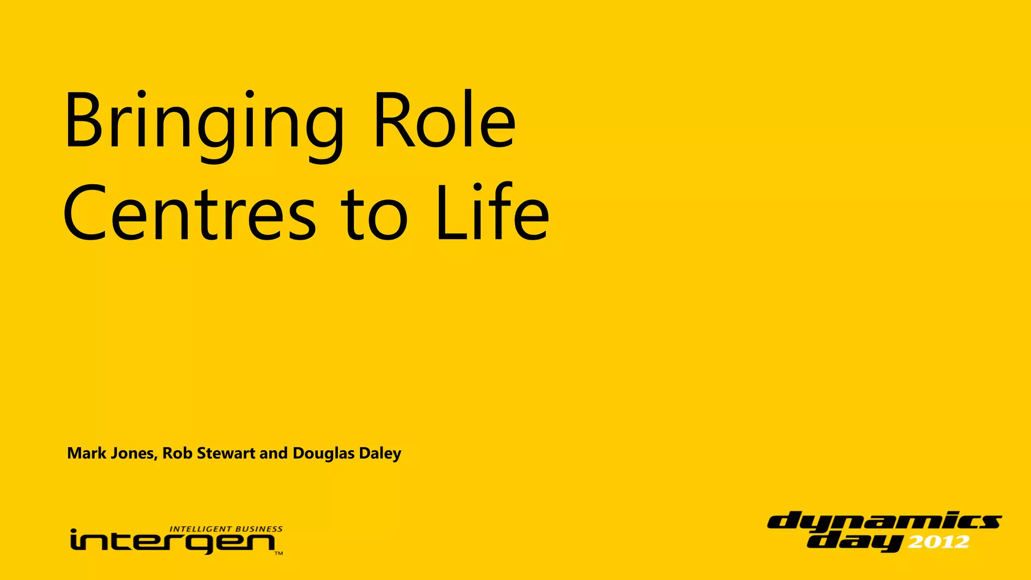 The document discusses the concept of role centres, which serve as dashboards tailored for specific roles such as financial controllers and dispatch managers. It highlights the components of these dashboards, including KPIs, reports, and charts, built on SharePoint 2010 and the SQL Server BI suite. There is an emphasis on making these dashboards useful through insights, automation, and integration with corporate identity.