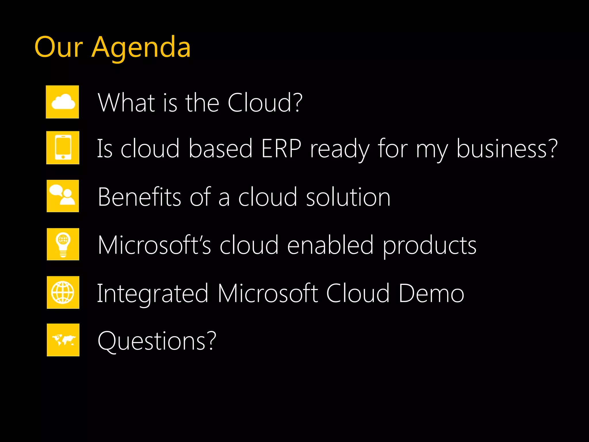 The document discusses the advantages and considerations of implementing cloud-based ERP systems for businesses, highlighting the growing trend towards cloud solutions. It outlines factors such as cost savings, flexibility, and increased productivity associated with cloud ERP, while posing important questions for businesses when choosing a cloud provider. The presenters emphasize that transitioning to the cloud is increasingly inevitable and provide examples of Microsoft’s cloud offerings like Office 365 and Dynamics CRM.