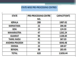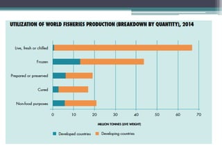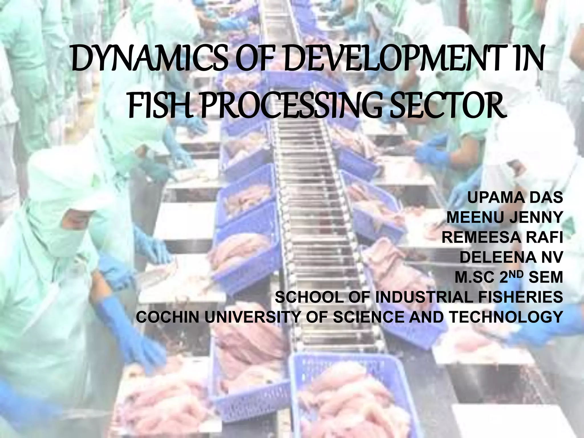 This document discusses technological developments in the fish processing sector. It begins by defining fish processing and describing some common processing techniques like drying, salting, smoking, chilling and freezing. It then discusses developments in product development, packaging modernization, quality control and processing infrastructure in India. Specific technologies like quick freezing, IQF freezing, cryogenic freezing and types of freezers are explained. The document highlights India's growth as a major fish exporter and continued opportunities for investment and improvement in the fish processing sector through adoption of new technologies.