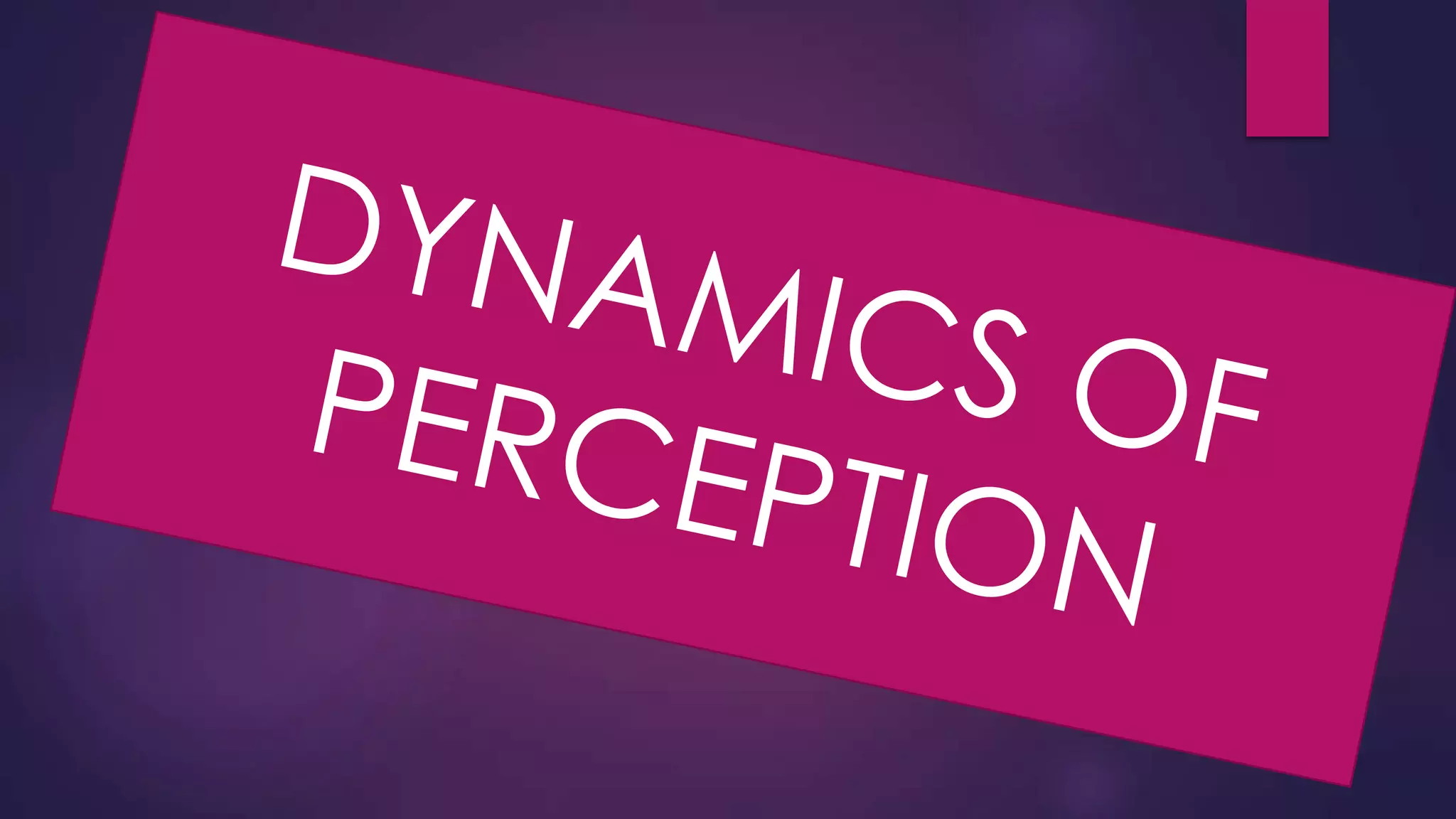 The document discusses the dynamics of perception from three aspects: perceptual selection, organization, and interpretation. It focuses on perceptual selection, which involves consumers selectively attending to environmental stimuli based on three main factors: the nature of the stimulus, their previous experiences, and their motives. Consumers filter stimuli through selective exposure, selective attention, perceptual defense, and perceptual blocking mechanisms. They tend to notice stimuli that confirm their beliefs and fulfill their needs, while ignoring threatening or irrelevant information.