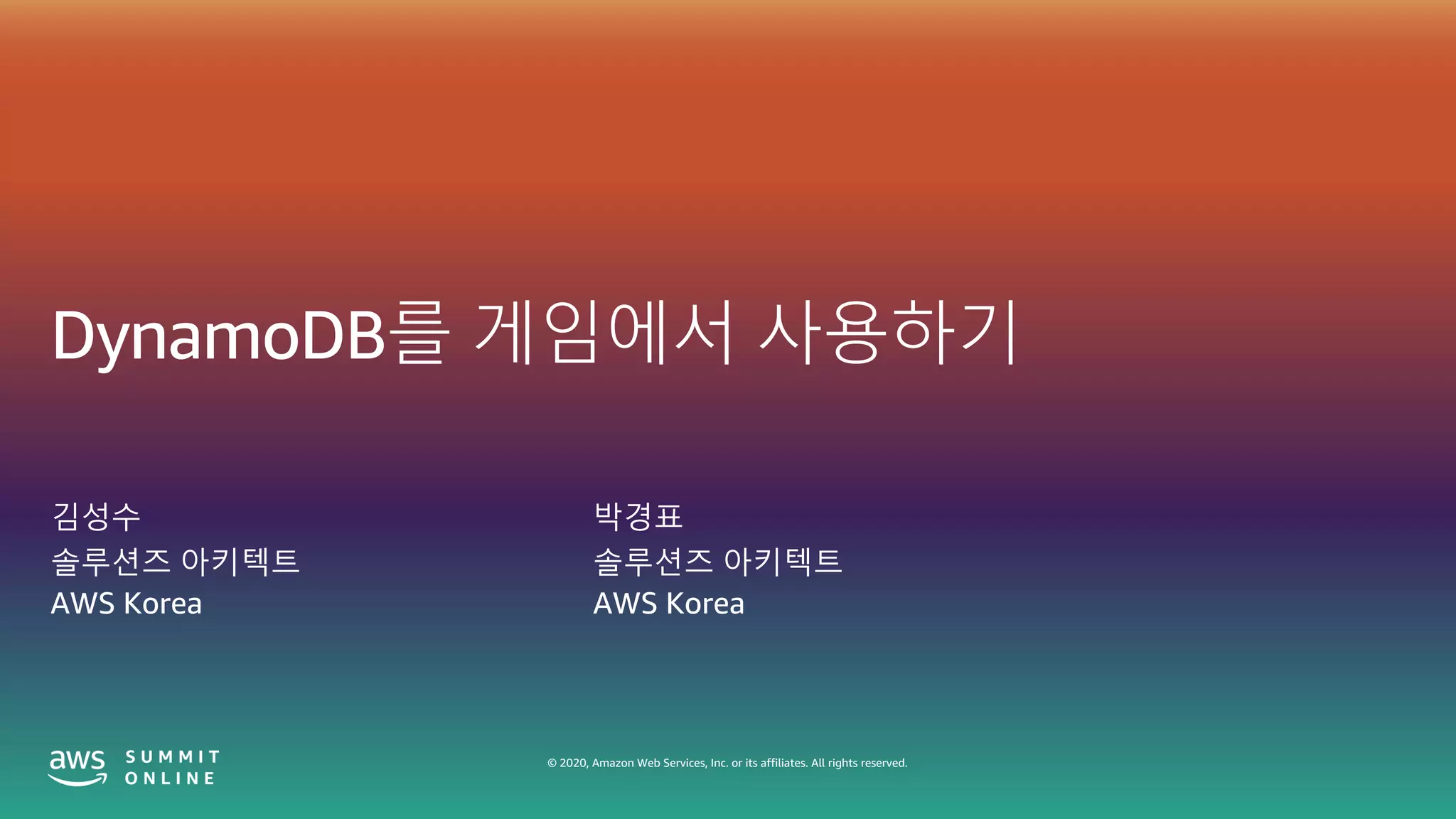 DynamoDB를 게임에서 사용하기 – 김성수, 박경표, AWS솔루션즈 아키텍트:: AWS Summit Online Korea 2020