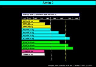 3) It summarizes trials comparing different statins and their average LDL-C reduction, finding some are more effective than others at reducing LDL-C.