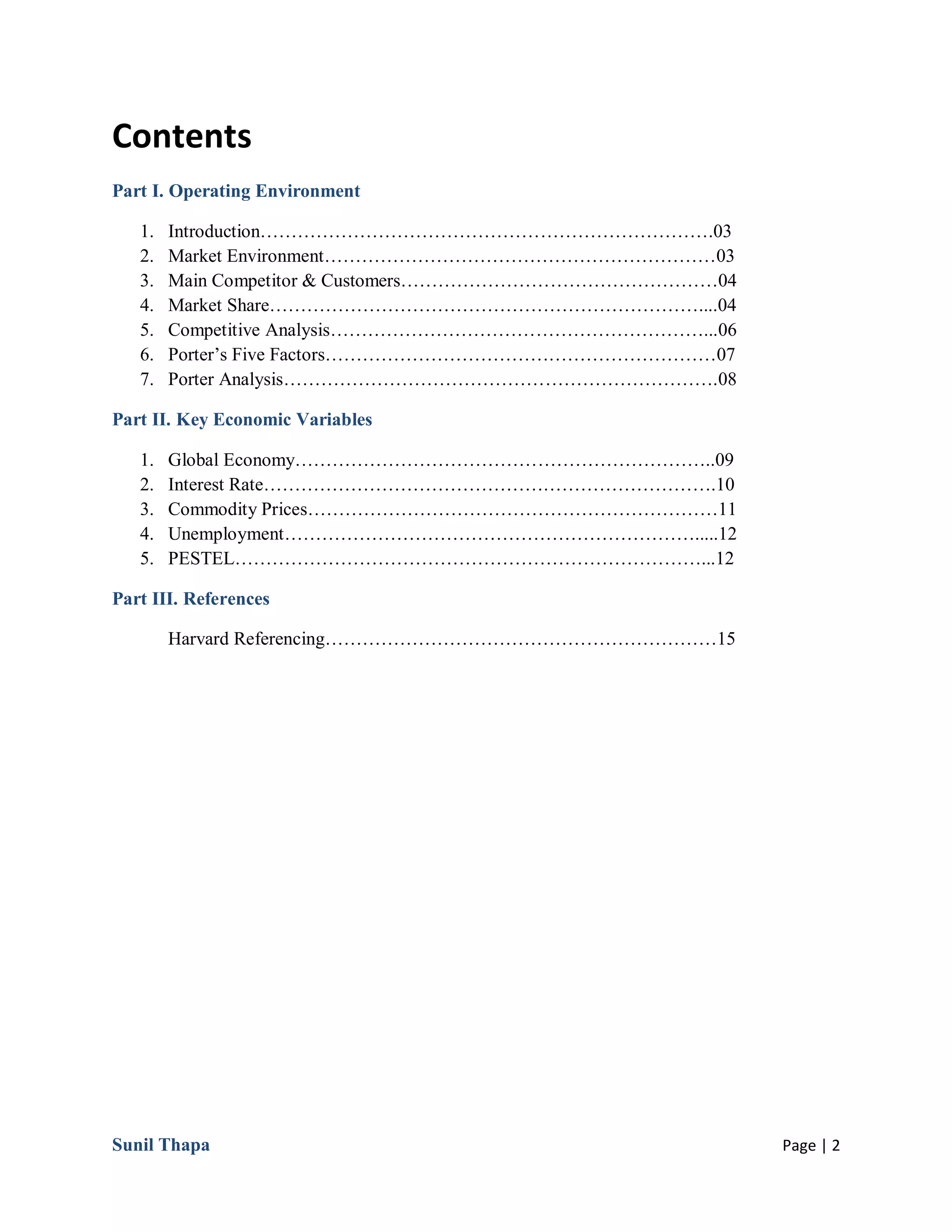 The document provides an overview of Dyson Ltd's operating environment and key economic factors. It analyzes Dyson's market share and competitors in the vacuum cleaner industry globally and in key markets like the UK, US, and Europe. It discusses Porter's five forces of competition in the industry including competitive rivalry between Dyson and other major brands. The document also examines how macroeconomic variables like global economic growth, interest rates, commodity prices, and unemployment could impact Dyson's business performance.