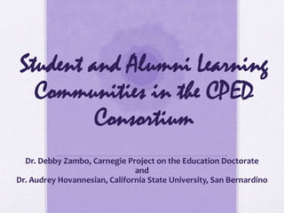 1) The document discusses the potential benefits of forming learning communities (LCs) among EdD students, alumni, and faculty across institutions, as proposed by Tony Bryk in 2012. Benefits include encouraging innovation, collaboration, and support for students and graduates.