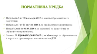 и науката за организиране и провеждане на ДЗИ.
