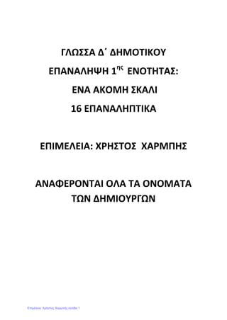 Γλώσσα Δ΄. Eπανάληψη 1ης Ενότητας: ΄΄Ένα ακόμα σκαλί...΄΄