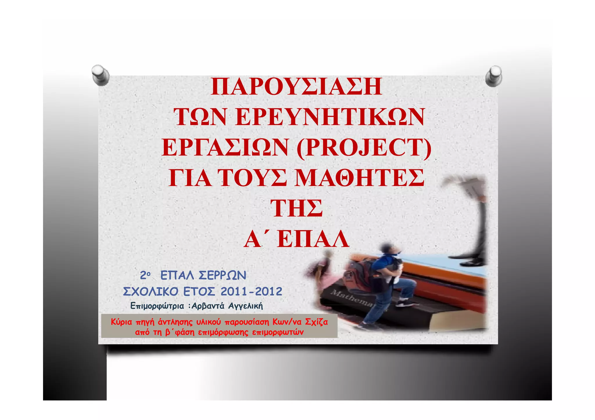 «Ερευνητικής Εργασίας» για το σχολικό έτος θα