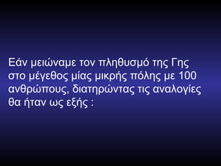 80 θα έχουνκακές συνθήκες διαβίωσης 70 θα είναι αγράμματοι 50 θα είναι ανειδίκευτοι 1 θα πεθάνει 2 θα γεννηθούν 1 θα έχει computer 1 μόνο θα έχει ανώτατη εκπαίδευση