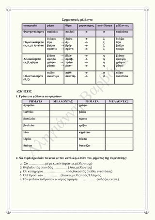 κατηγορία ρήμα θέμα χαρακτήρας αποτέλεσμα μέλλοντας