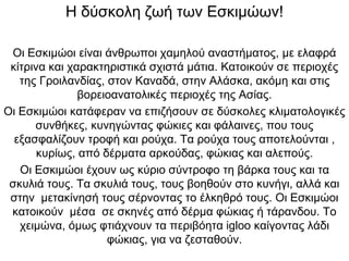 στην μετακίνησή τους σέρνοντας το έλκηθρό τους. Οι Εσκιμώοι