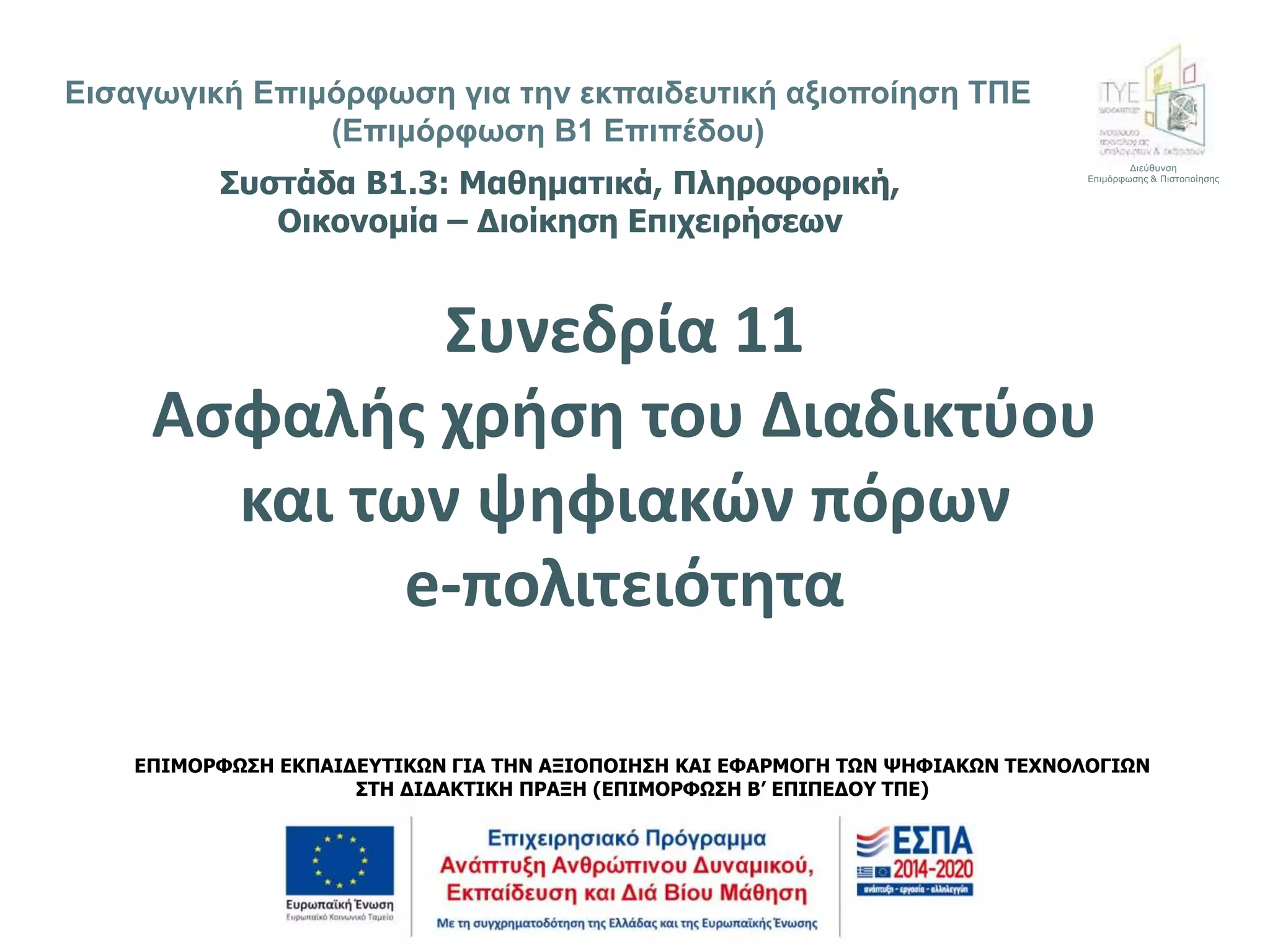 της γενικά ασφαλούς χρήσης των ψηφιακών πόρων,