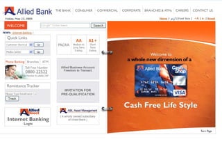 The document discusses internet banking or e-banking. It provides a history of e-banking starting in the 1980s and defines e-banking as conducting financial transactions through a secure bank website. It describes the types of e-banking services available and provides statistics on its popularity in India. It also discusses how banks currently use the internet, examples of e-banking products/services, online banking frauds and risks, and recommendations to improve online banking.