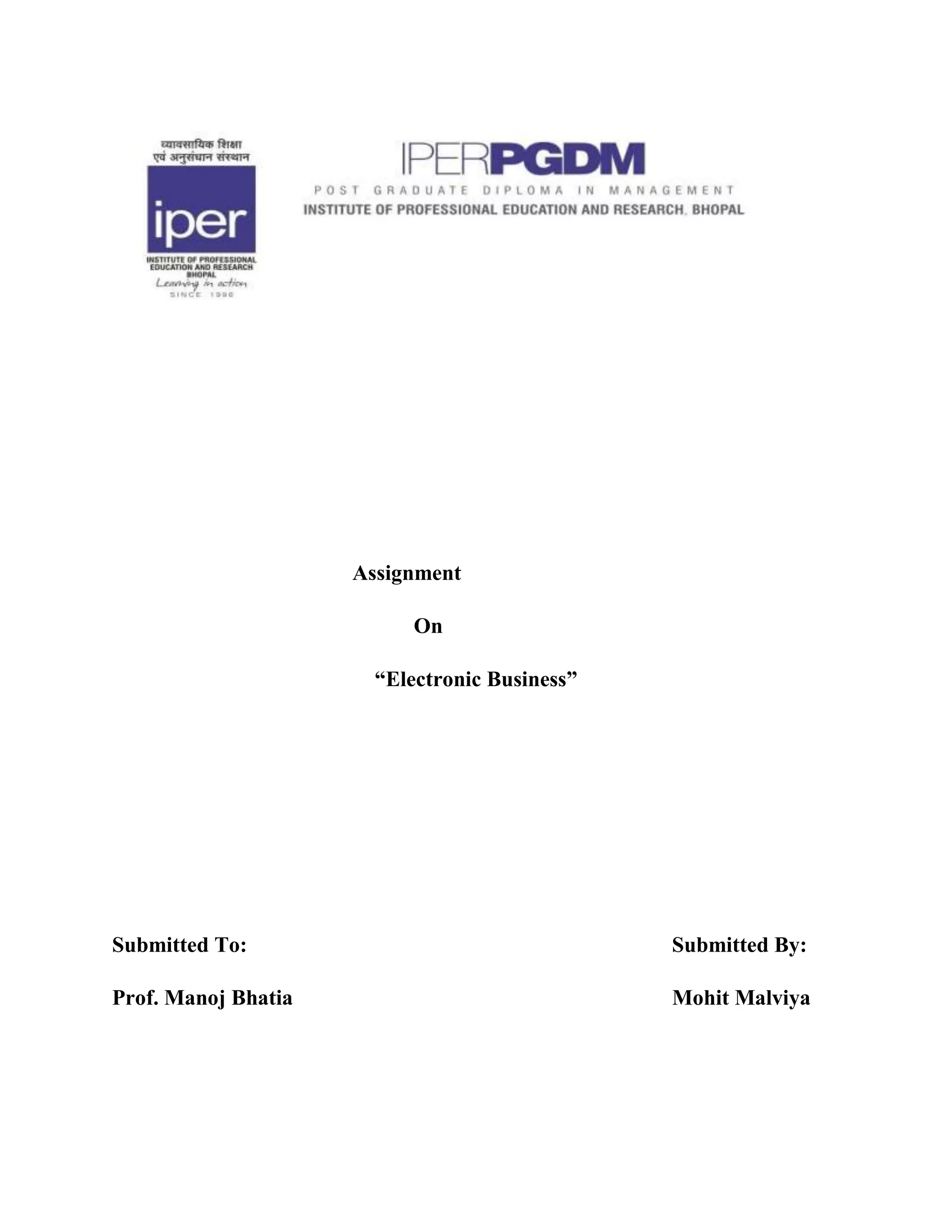 The document discusses electronic business (e-business) and electronic commerce (e-commerce), defining them and differentiating the two. It then lists three successful e-commerce companies (Amazon, Dell, Apple) and three failed ones (MVP.com, Thought Inc., Channel A), providing brief explanations for each. Finally, it discusses factors driving and inhibiting e-commerce growth in India, and provides statistics on e-commerce usage and growth in the country from 2006-2011.