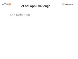 This document outlines the requirements for an app challenge, including details about the team, defining the app, how the app works and its unique selling proposition, the technology stack used, progress updates, and the future roadmap for the app.