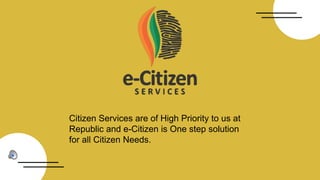 The e-citizen service aims to provide a one-stop solution for citizens' needs by offering a wide range of services from both government and private entities, making access to essential services simple and efficient. It includes platforms like Jagaana for personalized service eligibility, Xellent India for authentic products, and Castle Fox for home and hotel stays, all designed to enhance user experiences. Additionally, the service emphasizes social responsibility through initiatives like solar roofing and supports farmers with curated agricultural services.