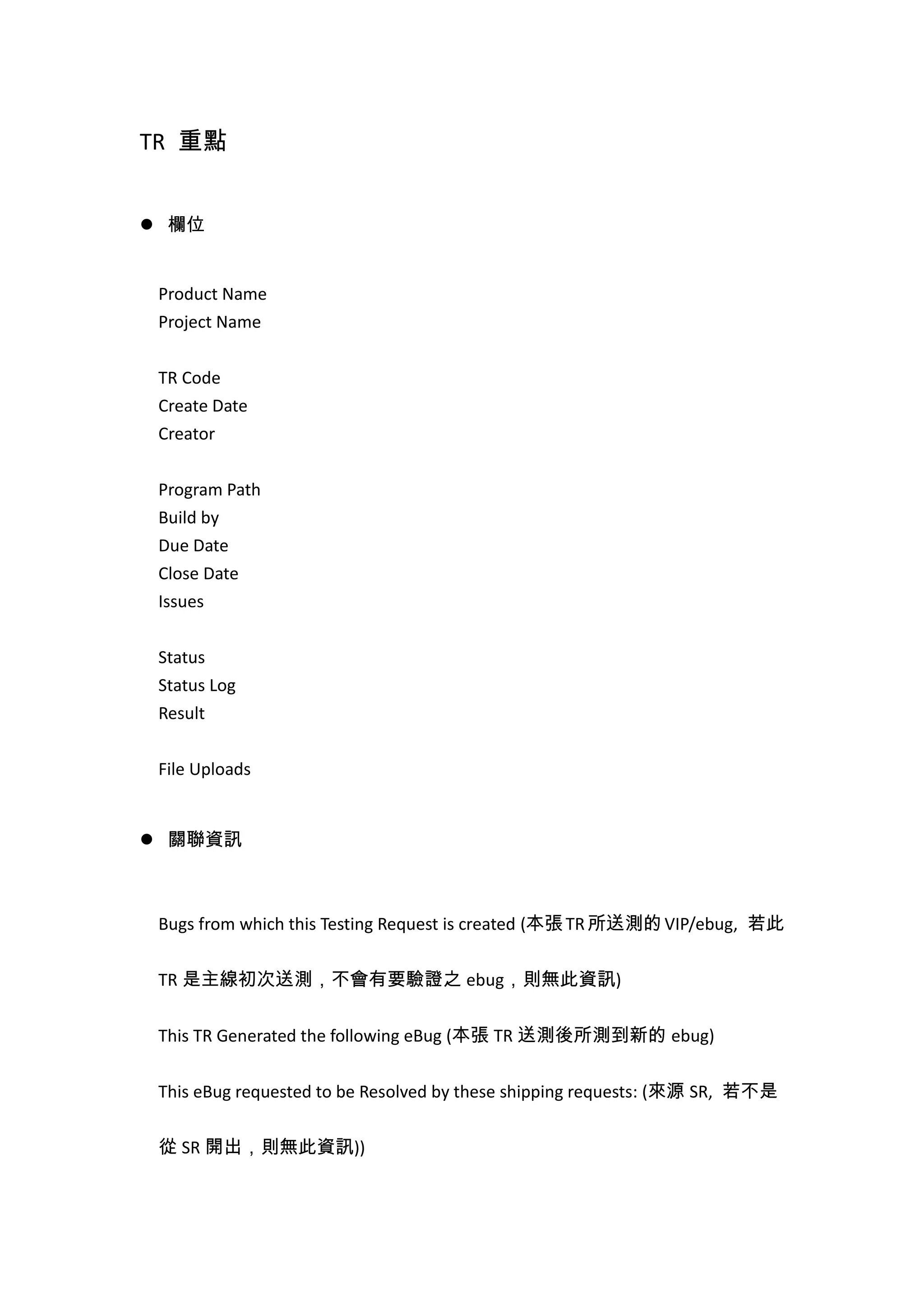 TR 是主線初次送測,不會有要驗證之 ebug,則無此資訊)