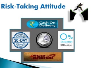 The document discusses various topics related to e-commerce including definitions of key terms, advantages and challenges. It provides an overview of e-commerce concepts like business-to-business and business-to-consumer models. It also outlines some of the legal and ethical issues in e-commerce such as privacy, fraud and copyright. Additionally, it notes the growth of e-commerce in India and discusses regulations and new consumer groups like urban women and youth that are driving online shopping.