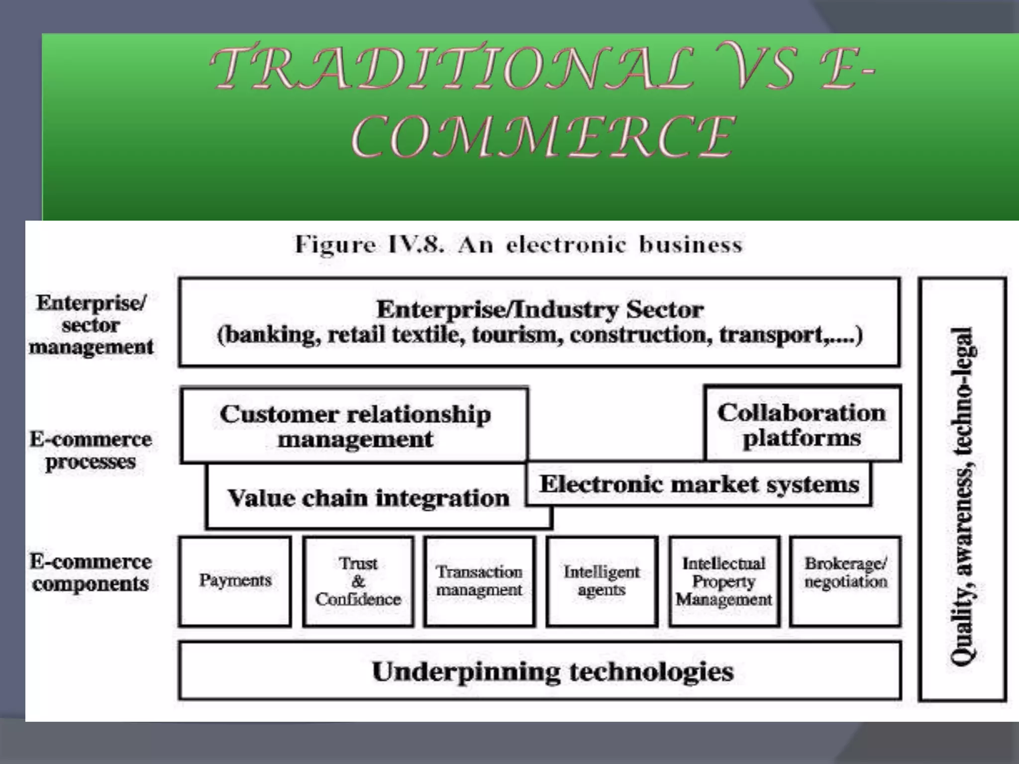 - The advantages of e-commerce are global reach, lower costs of acquiring/serving customers, and disintermediation. The disadvantages include lack of quality guarantees, technical issues, and security risks.