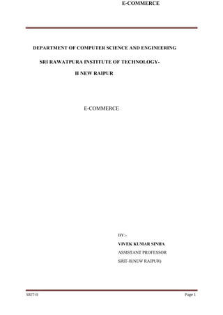 This document provides an overview of e-commerce and discusses various topics related to e-commerce including: