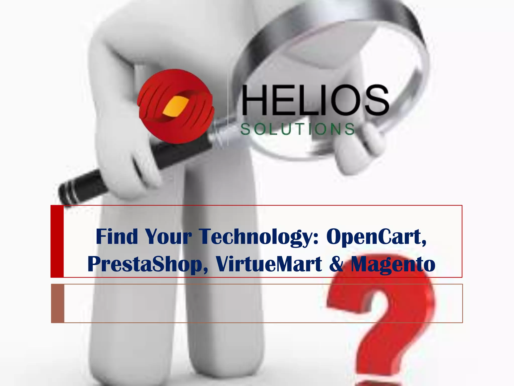 The document provides an opinion on various ecommerce technologies including OpenCart, PrestaShop, VirtueMart, and Magento, comparing their functionalities and ease of use. OpenCart is highlighted for its user-friendliness and rapid development capabilities, while PrestaShop is noted for its flexibility despite a steeper learning curve. VirtueMart is recognized for its integration with Joomla, and Magento is lauded for its comprehensive features but criticized for its complexity and performance issues on non-dedicated servers.