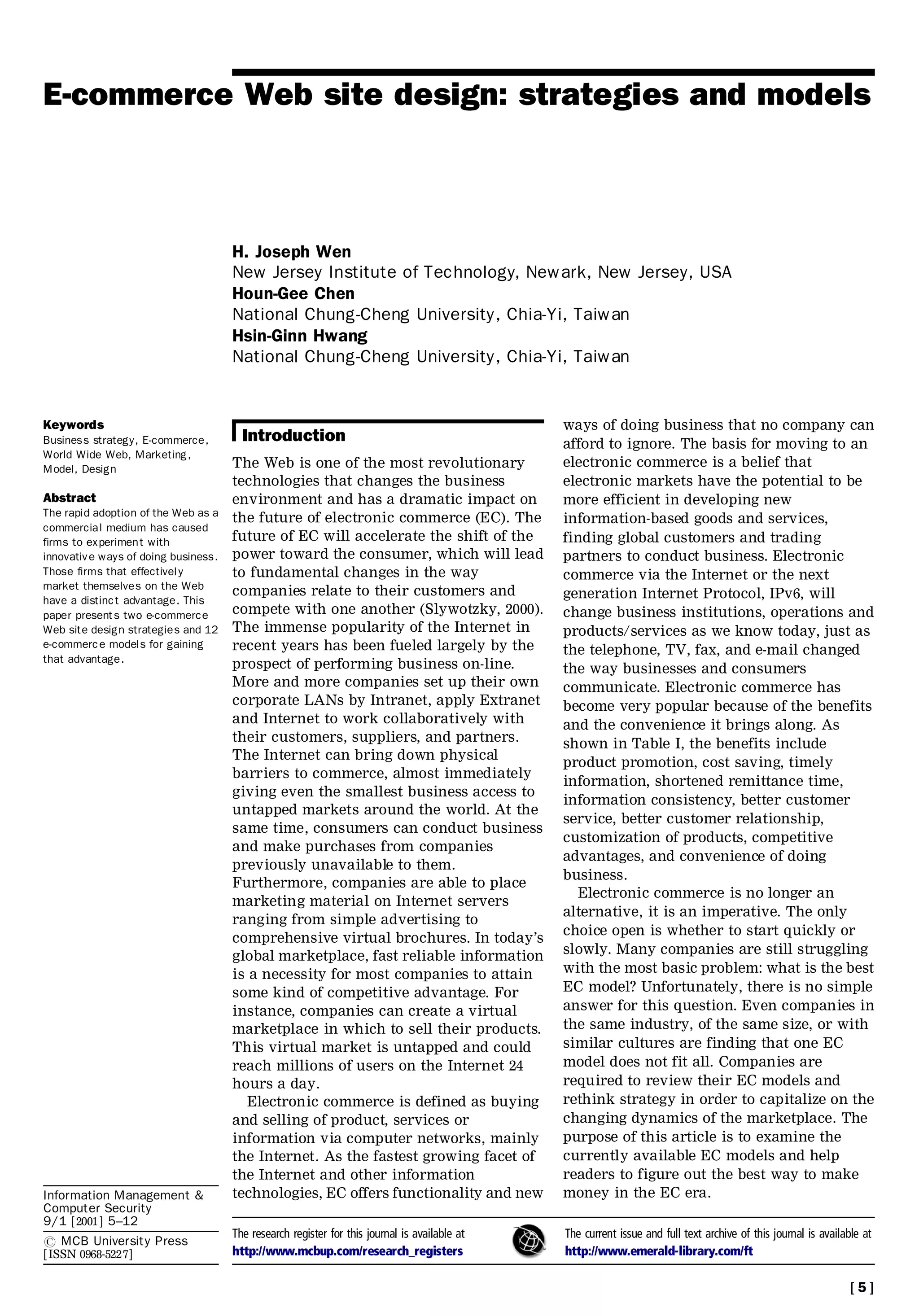 E-commerce Web site design strategies and models. There are two main strategies: informational/communicational and online/transactional. The informational strategy uses the web to supplement traditional marketing, while the transactional strategy allows online ordering. There are 12 identified models including brand awareness, cost savings, promotion, and serving as an info-mediary under the informational strategy. The transactional strategy focuses on online retailing and transactions. Effective e-commerce requires understanding both strategies and choosing appropriate models.