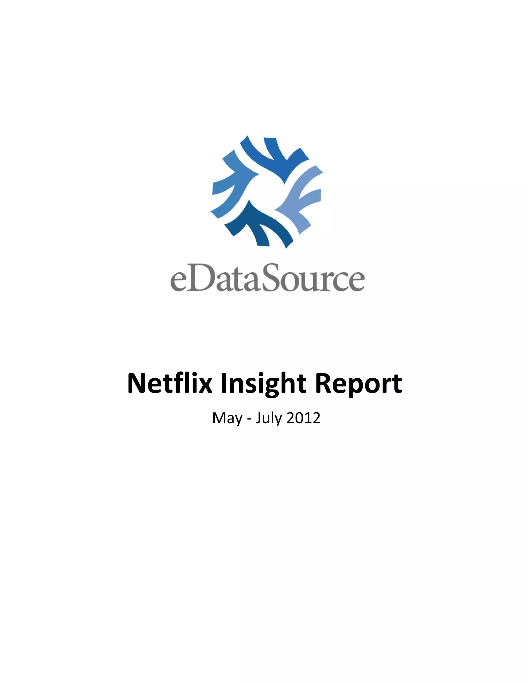 This report analyzes Netflix's business performance from May to July 2012 using data from 8,000 anonymized Netflix emails. It finds that while Netflix was once dominant in DVD rentals and growing rapidly, the company struggled after a 2011 price hike and plan changes upset customers. The report details metrics like new subscriber numbers and trends, free trial conversions, popular rentals and social media performance to understand Netflix's challenges after its missteps and as streaming becomes increasingly important.
