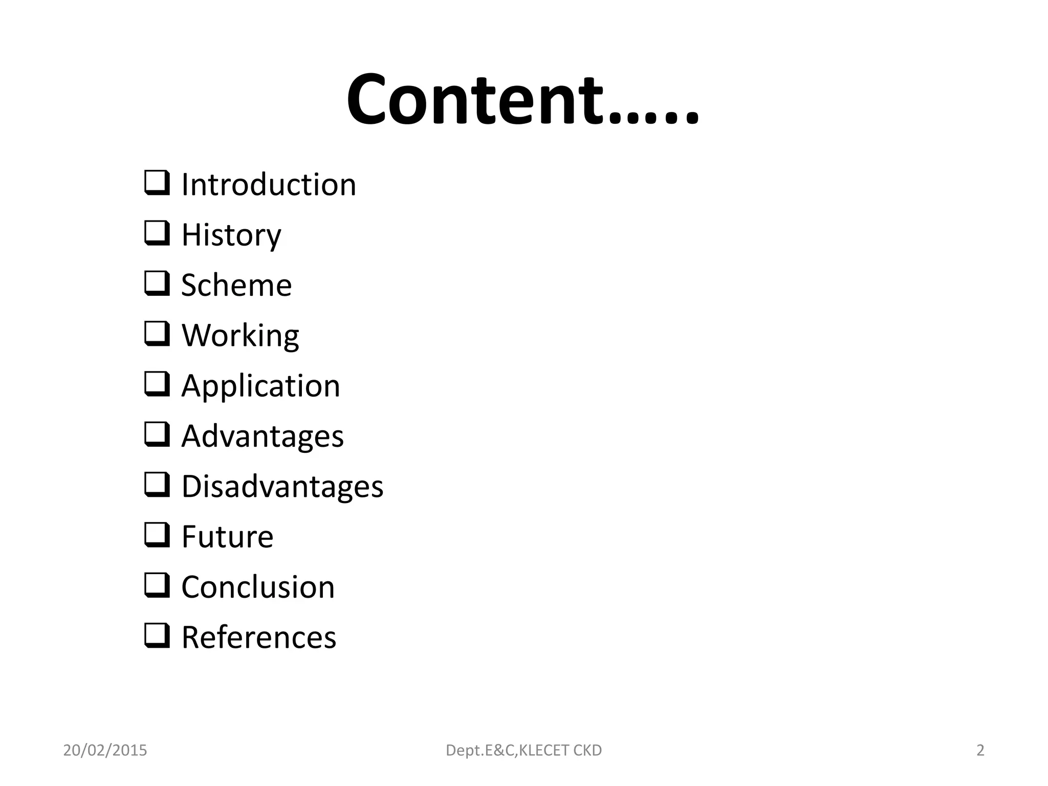 Umesh R. D. presented a seminar on E ink at the Department of Electronics and Communication Engineering at KLE CET Chikkodi. The seminar discussed the history, working, types, applications and future of E ink. E ink was invented in 1996 at MIT and uses microcapsules of charged pigments to display text without using power. It is used in e-readers, watches, signs and other devices due to its low power consumption and ability to be read in sunlight. E ink has advantages over LCD but limitations in displaying colors and video. Future applications are expected in homes, mobile devices, and education.