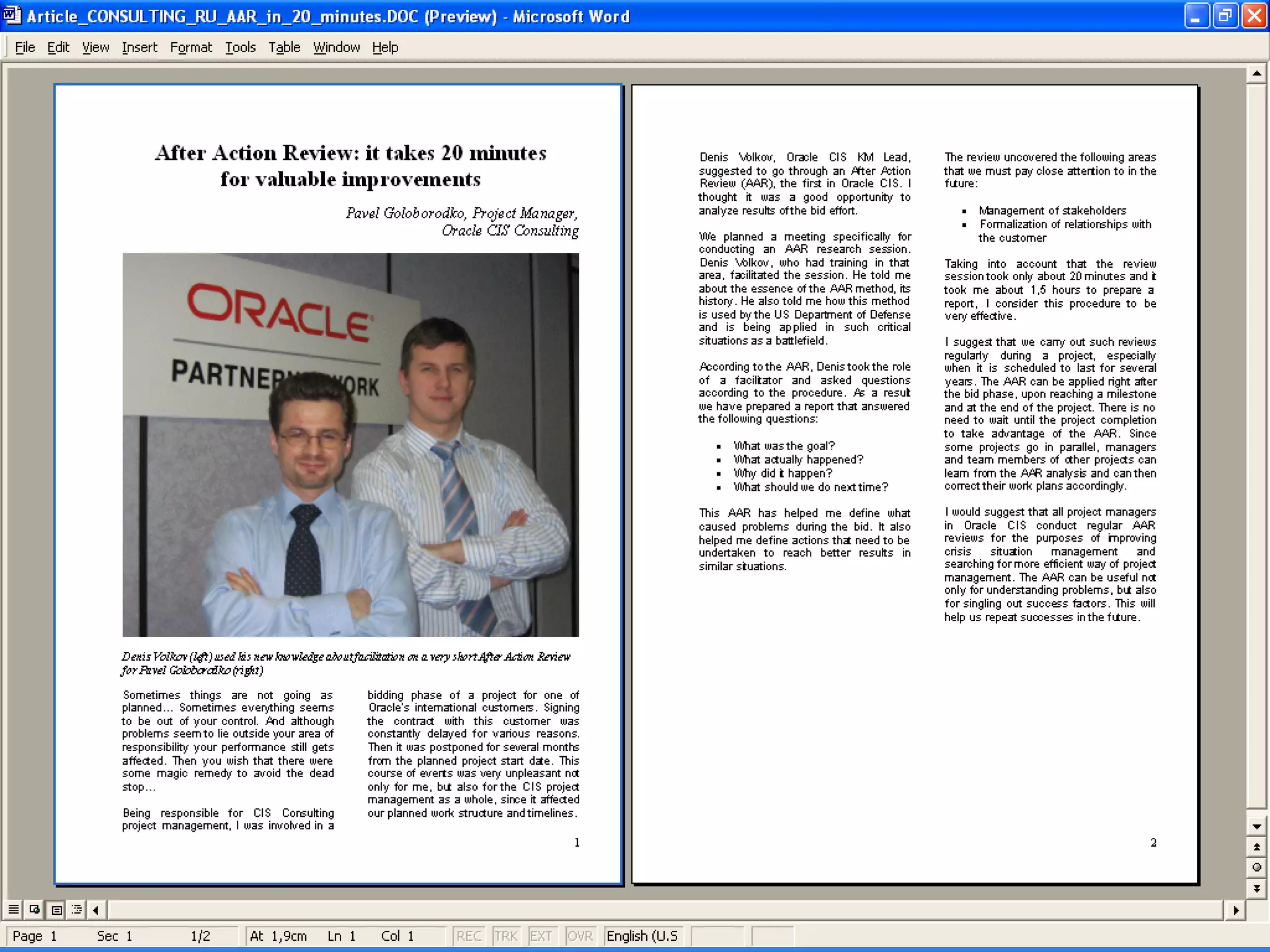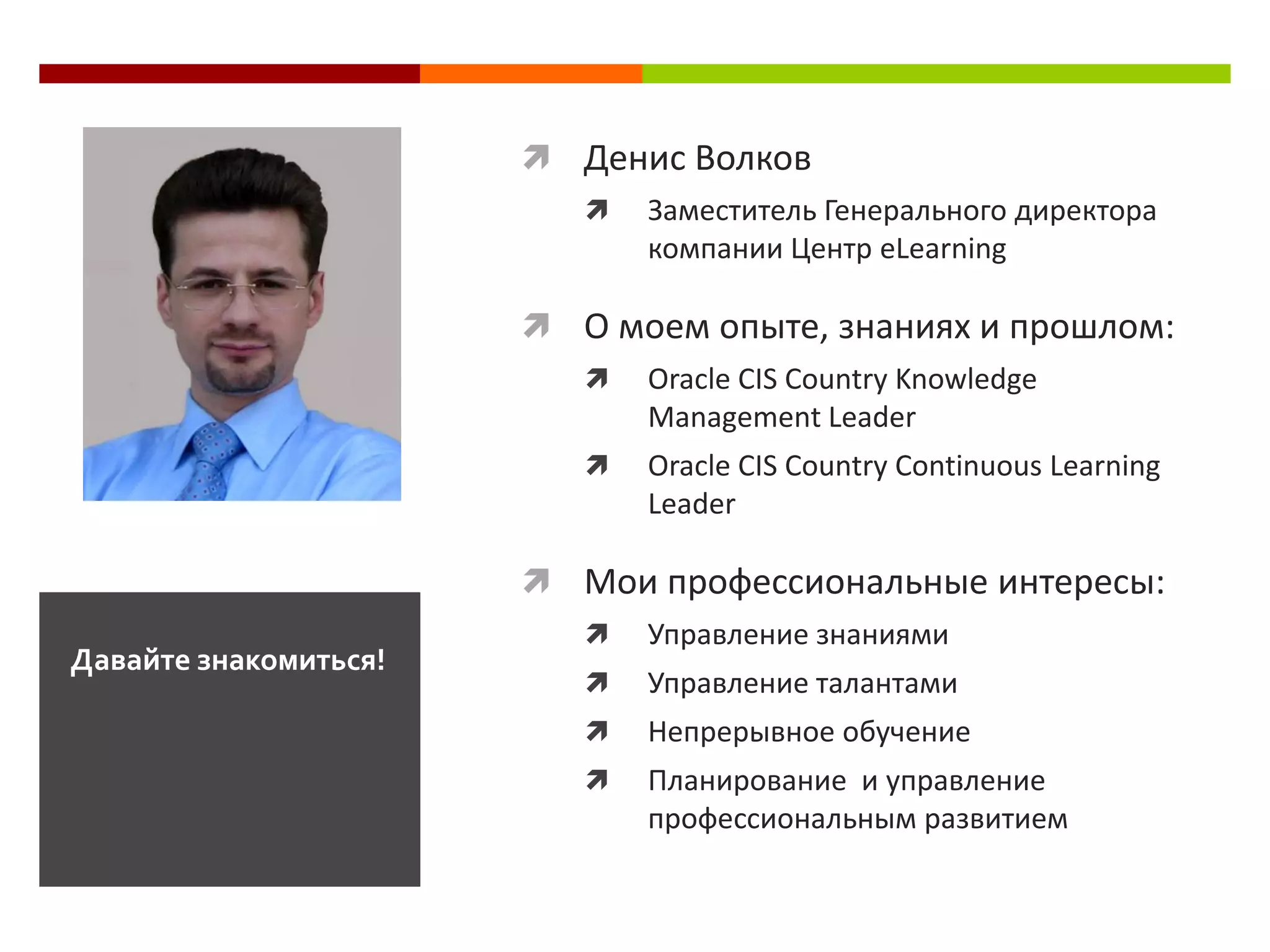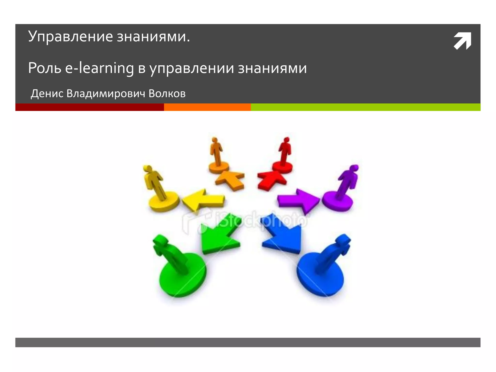 Документ посвящен управлению знаниями и роли e-learning в этой области, представленный Денисом Волковым, заместителем генерального директора компании Центр e-learning. Он описывает понятия, инструменты и практические аспекты управления знаниями, включая системы, процессы и технологии, а также методы извлечения, формализации и передачи знаний. Кроме того, документ освещает ключевые факторы успеха внедрения системы управления знаниями в организациях.