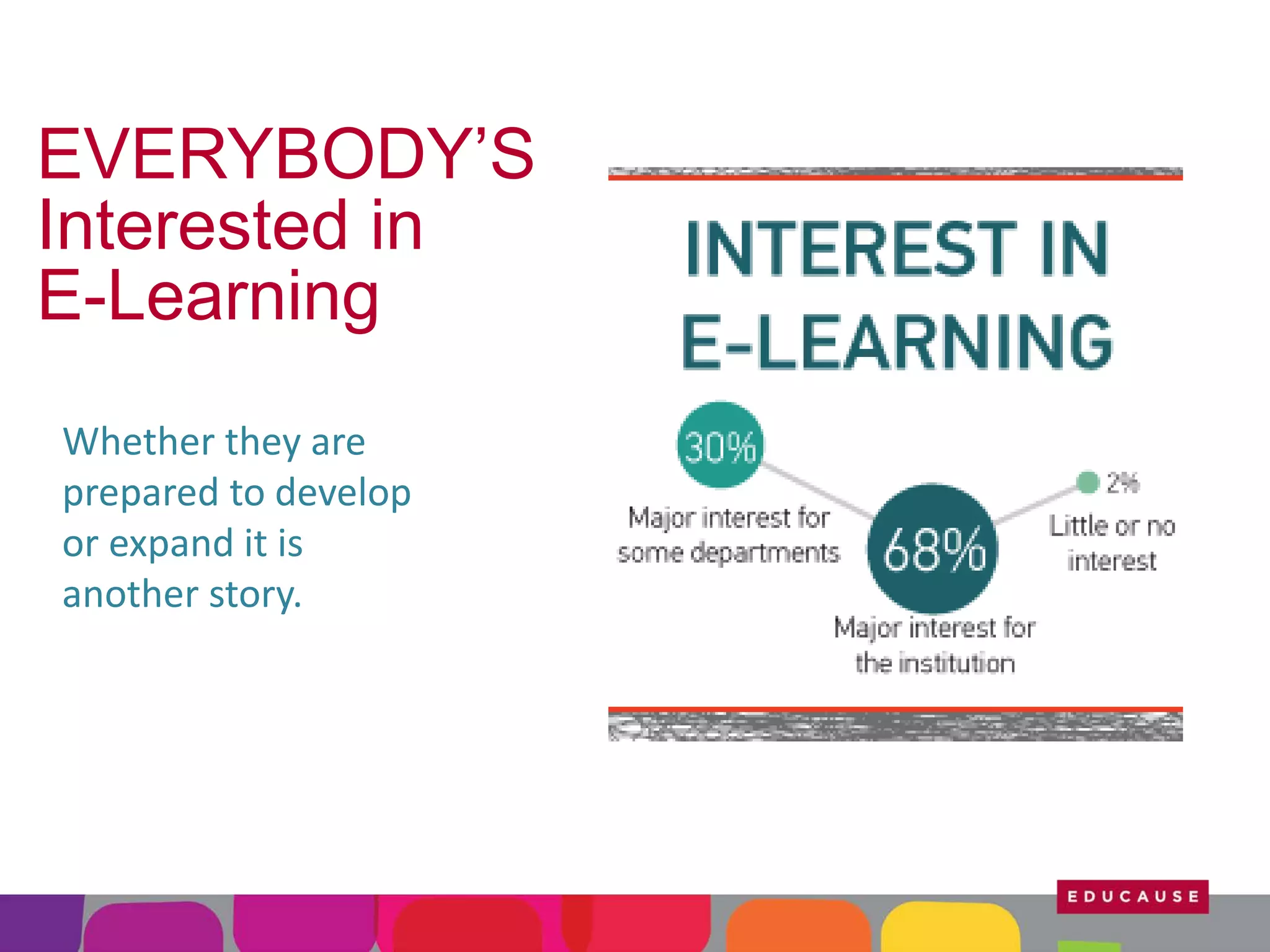 This document summarizes the state of e-learning in higher education. It finds that while most institutions are interested in e-learning, not all are prepared to develop or expand their online offerings. It also discusses the benefits of e-learning for flexibility, teaching, and learning. While online course offerings are growing, some institutions still lack resources or see online learning as not fitting their mission. The document concludes that e-learning initiatives face challenges regarding faculty skepticism, financial models, and ensuring academic quality, but that these challenges can be addressed through strategic planning and investment.
