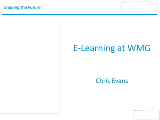 This document summarizes an e-learning presentation at WMG. It begins with an agenda that includes a review of the past academic year, case studies of e-learning projects, and the quality cycle for improving e-learning. The review section notes expanded use of Moodle and new programs. Case studies describe projects like screencasts and video podcasts. The quality cycle section outlines an ongoing process of planning, implementing, evaluating and improving e-learning initiatives. A student survey on Moodle usage and preferences is also summarized. The presentation concludes by asking for any questions.