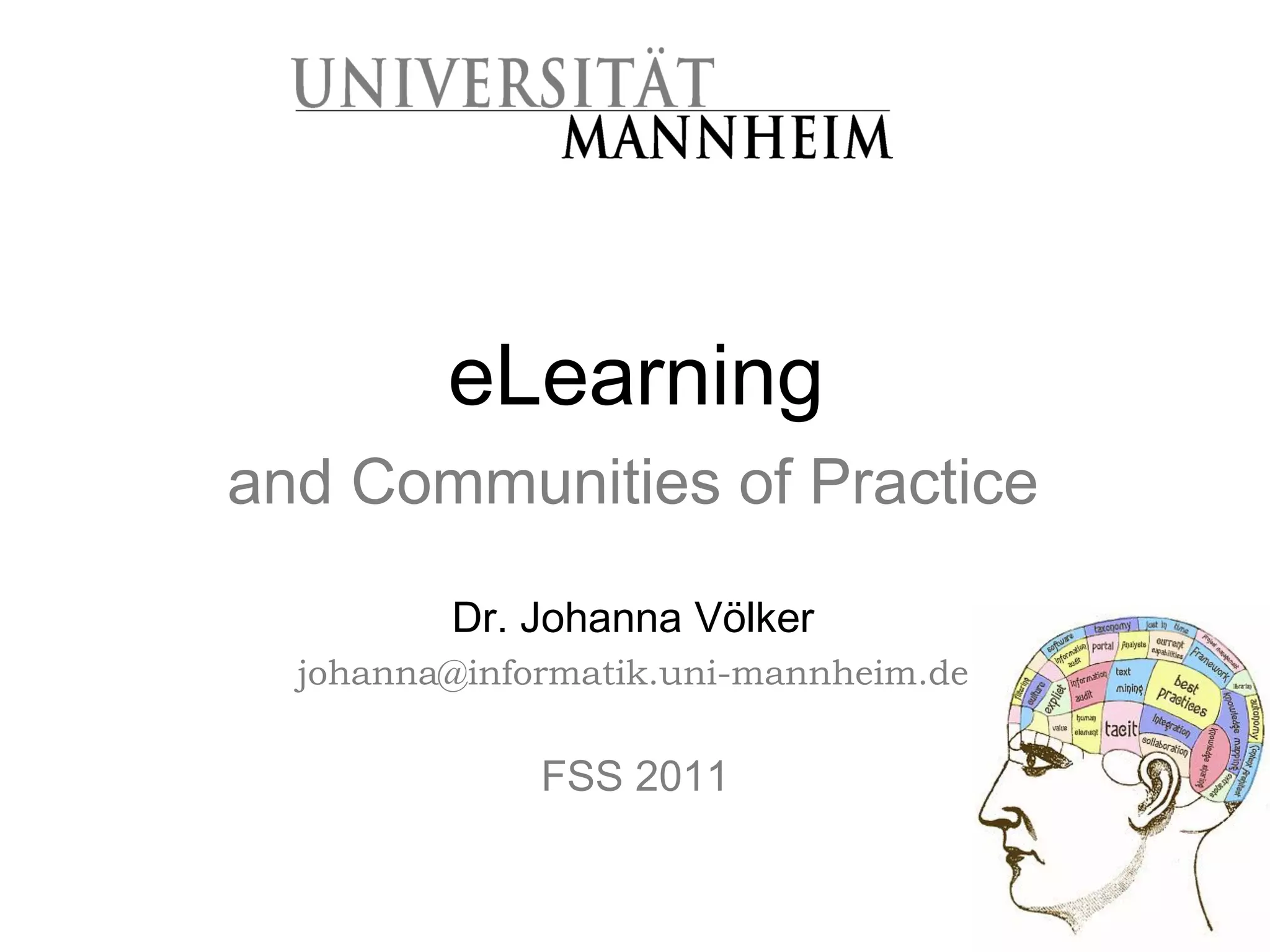 The document discusses eLearning and communities of practice. It provides an overview of key topics: