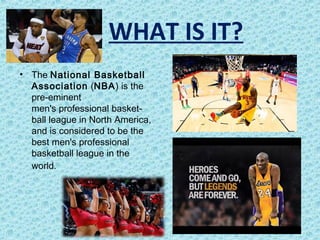 The National Basketball Association (NBA) is the premier men's professional basketball league in North America, founded in 1946. It is considered the best basketball league in the world. The NBA season culminates in the playoffs between April and June, with the 16 best teams from the Eastern and Western conferences competing through 3 rounds. Some of the best players of all time include Michael Jordan, Kareem Abdul-Jabbar, and Magic Johnson. NBA individual records are held by Wilt Chamberlain, including scoring 100 points in a single game.