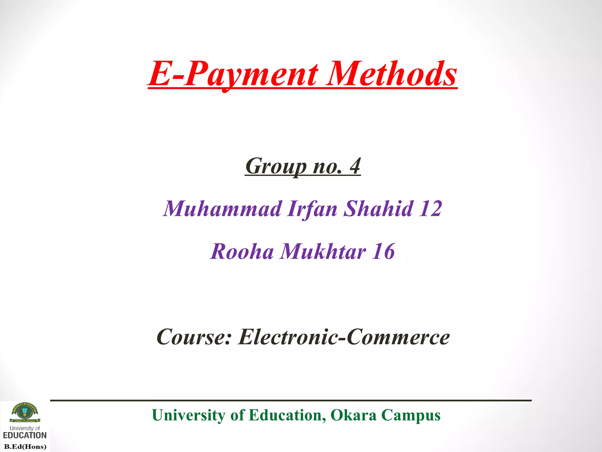 This document discusses various electronic payment methods. It begins by defining electronic payment as a financial exchange that occurs online between buyers and sellers using digital payment instruments. It then describes some traditional payment methods like cash, checks, and money orders. The document goes on to explain popular e-payment methods like credit cards, digital currency, e-wallets, peer-to-peer payments, smart cards, micro-payments, and B2B payments. It provides details on how some of these methods work, such as the credit card business model and digital currency concepts. The document concludes by listing some pros and cons of electronic payments.