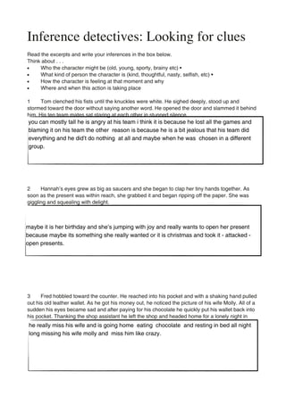 • What kind of person the character is (kind, thoughtful, nasty, selfish, etc) •