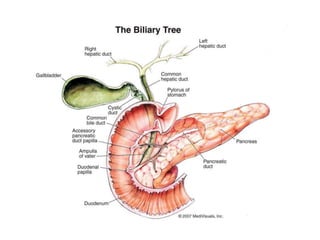 ERCP is an endoscopic procedure used to examine the duodenum, bile ducts, gallbladder, and pancreatic duct. A endoscope is inserted through the mouth and stomach to access the papilla of Vater. Contrast dye is injected through the endoscope to allow visualization of the bile and pancreatic ducts via x-ray imaging. Sedation is provided during the procedure. Potential risks include infection, pancreatitis, and perforation of the GI tract, though complications are less than 10% when performed by an experienced doctor.