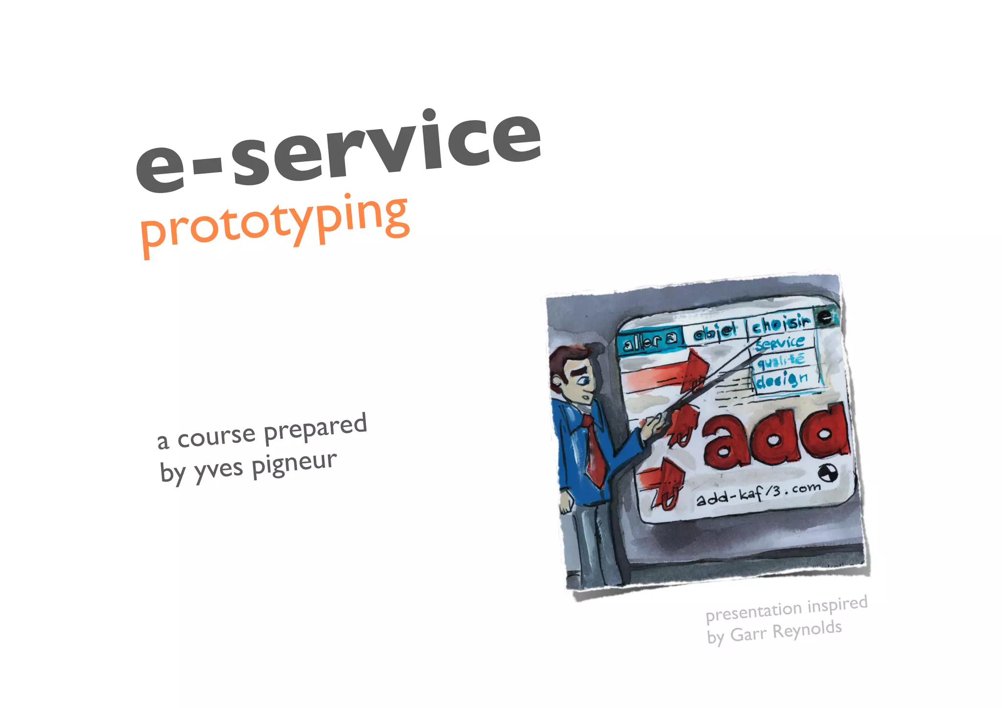 This document discusses prototyping for e-service design. It defines what a prototype is and its role in exploring user requirements and usability testing. Different prototyping techniques are described such as screen-based, interactive products, services, and paper, storyboard, facade, sketch, and scenario-based prototypes. Information design and interaction design principles are also covered.