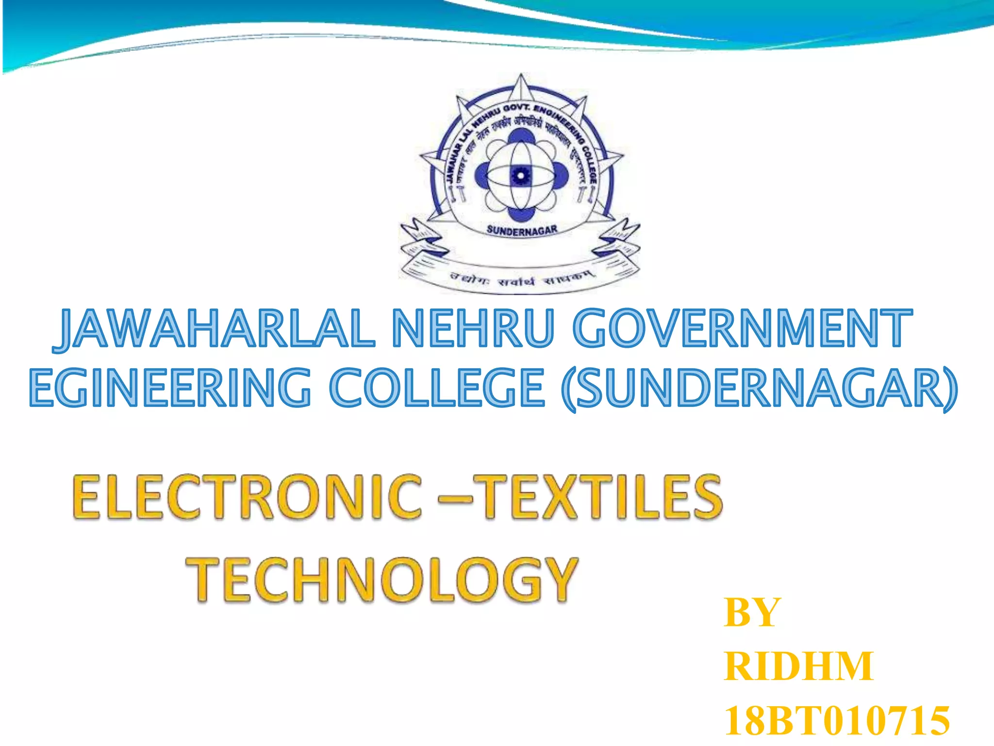 Electronic textiles, or e-textiles, are fabrics that can function electrically like electronics while maintaining physical textile properties. They enable digital components such as batteries, lights, and small computers to be embedded. Smart textiles have added functionality, such as communicating, transforming, conducting energy, or responding to inputs like vibrations or heat. Examples include fabrics that light up or change color. E-textiles have applications in athletics, extreme sports, the military, physical therapy, and protecting workers in harsh conditions like fires or cold environments. However, current e-textiles have limitations such as lack of waterproofing and low strength. Future technologies could address these issues and enable applications in clothing for children and commercialization