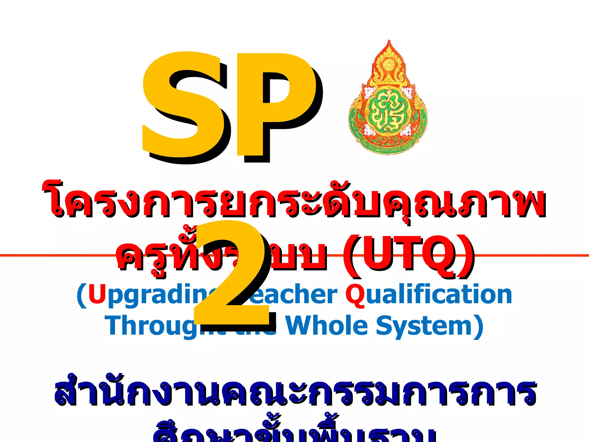 ( U pgrading T eacher Q ualification Throught the Whole System) สำนักงานคณะกรรมการการศึกษาขั้นพื้นฐาน SP2