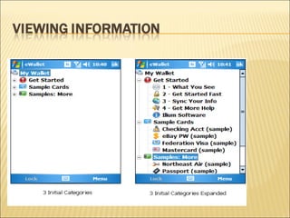 The document discusses the features and advantages of electronic wallets (e-Wallets). Key features include over 40 years of data retention, encrypted security, compatibility with multiple hardware, unlimited reusability, and inclusion of multiple card features in a single card. Advantages of e-Wallets are ease of use, accessibility, flexibility, safety, and control compared to traditional wallets. E-Wallets allow for paperless money transactions.