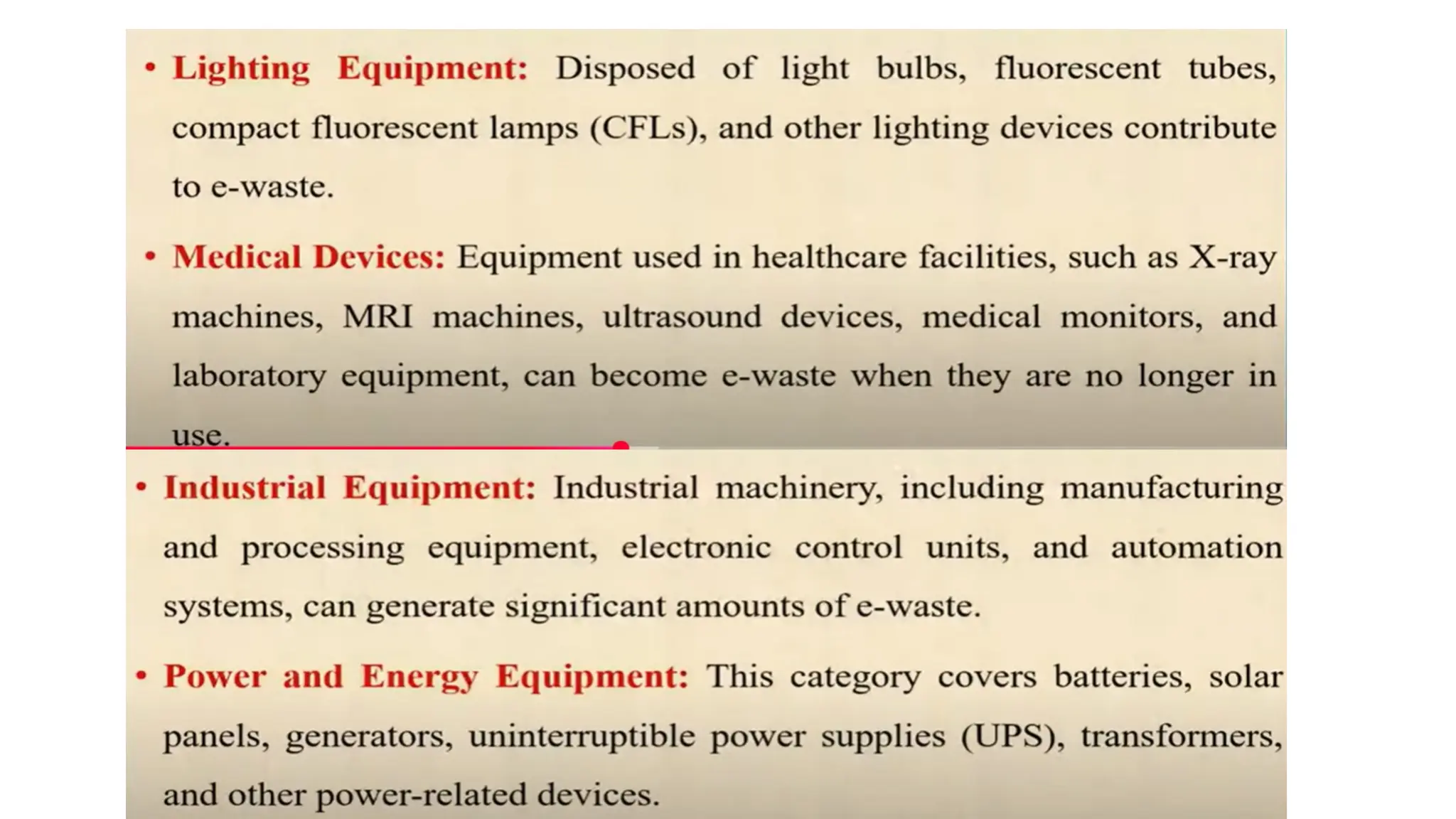 According to CPCB and international guidelines, e-waste is classified into: