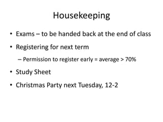 The document provides an overview of class activities for an English literature course, including a novel quiz, reading response, group work and discussion on assigned novels, a grammar study plan, and homework assignments. Students will write a reading response analyzing a philosophical statement from their novel, discuss novels in groups, evaluate their group work, and prepare for an upcoming grammar quiz and literature exam through review and study.