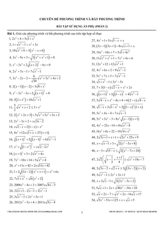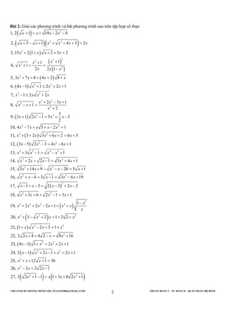 This document contains 50 math word problems involving solving equations and inequalities for real numbers. The problems cover topics like solving linear, quadratic, and rational equations; comparing expressions using inequalities; and solving systems of equations. They are presented in Vietnamese without translations.