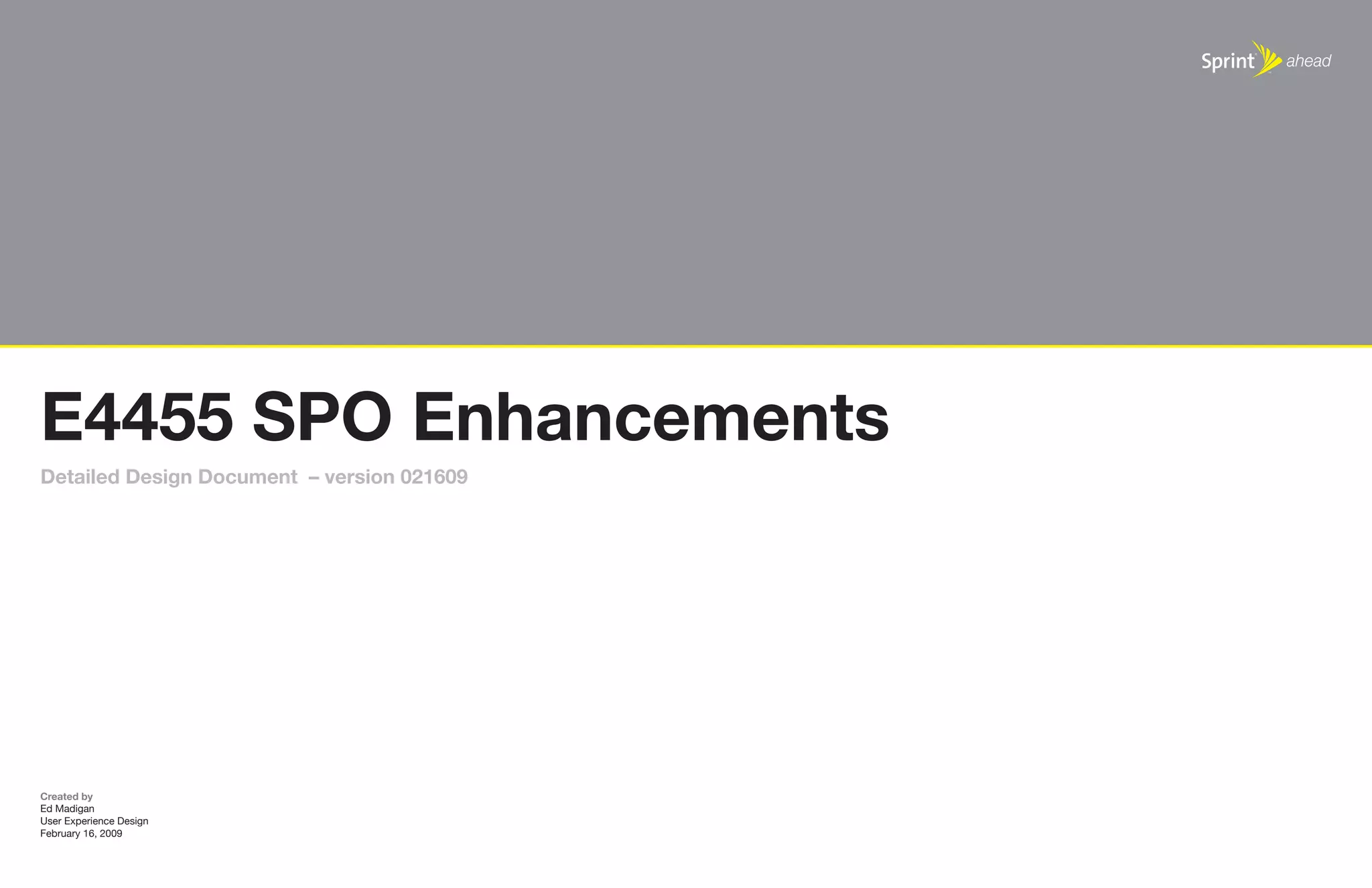The document provides details on proposed user interface and flow changes to Sprint's Plan Optimizer tool. It describes new and updated pages for the landing page, recommended plan details, usage charts, and the plan change process. The updates are aimed at simplifying the user experience, improving readability of recommendations, increasing usage data visibility, and allowing comparisons of up to three recommended plans.