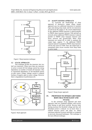 This document presents a comparative study of different low power consumption techniques in VLSI circuit design. It summarizes simulations performed on a XNOR gate circuit using techniques like sleep, stack, sleepy keeper, and proposed reverse body bias with sleep and stack. The simulations were done at 90nm technology and found that the proposed reverse body bias with sleep and stack technique achieved over 60% lower power consumption compared to the base case XNOR circuit, providing better results than other conventional techniques while maintaining performance.