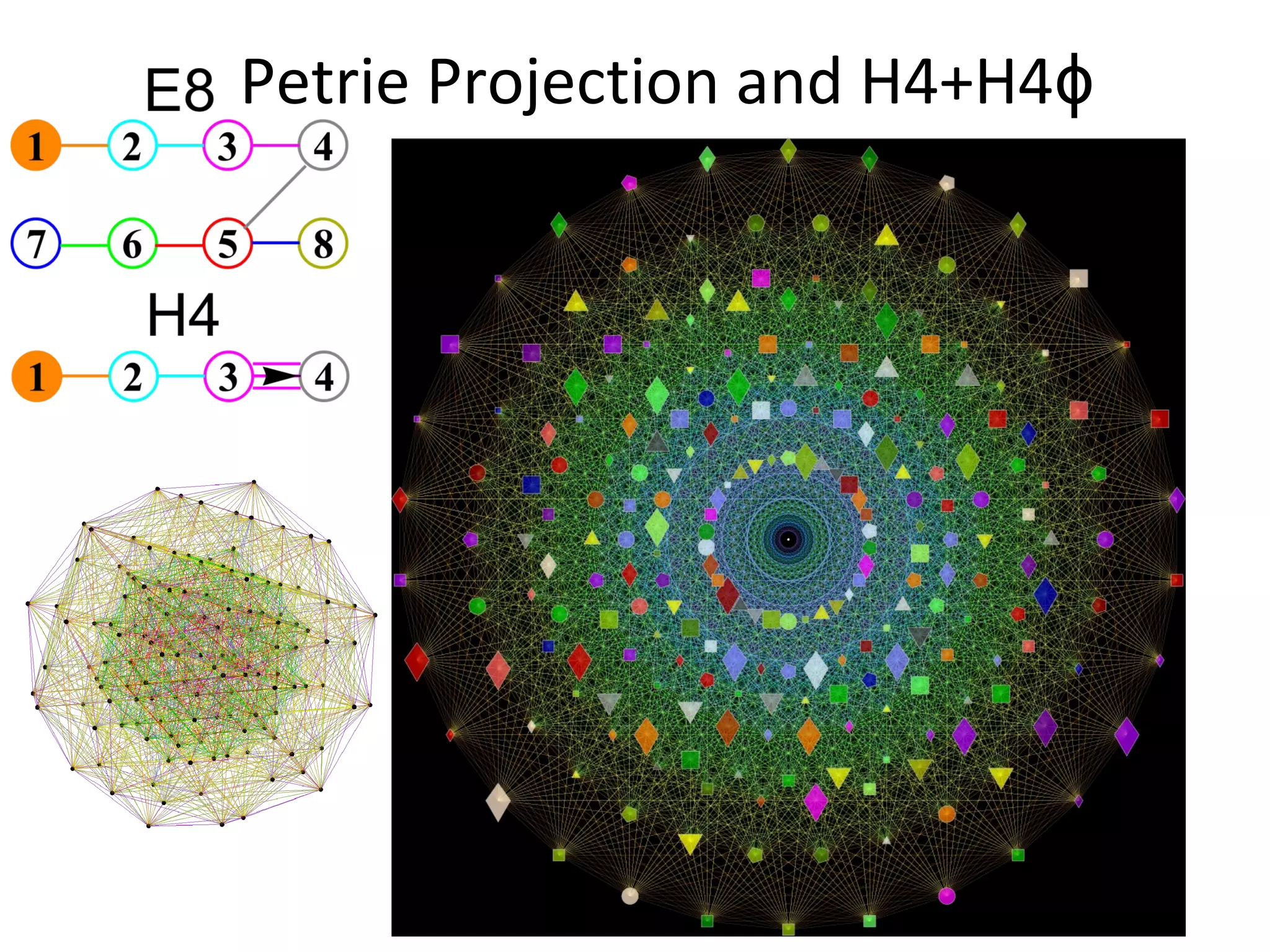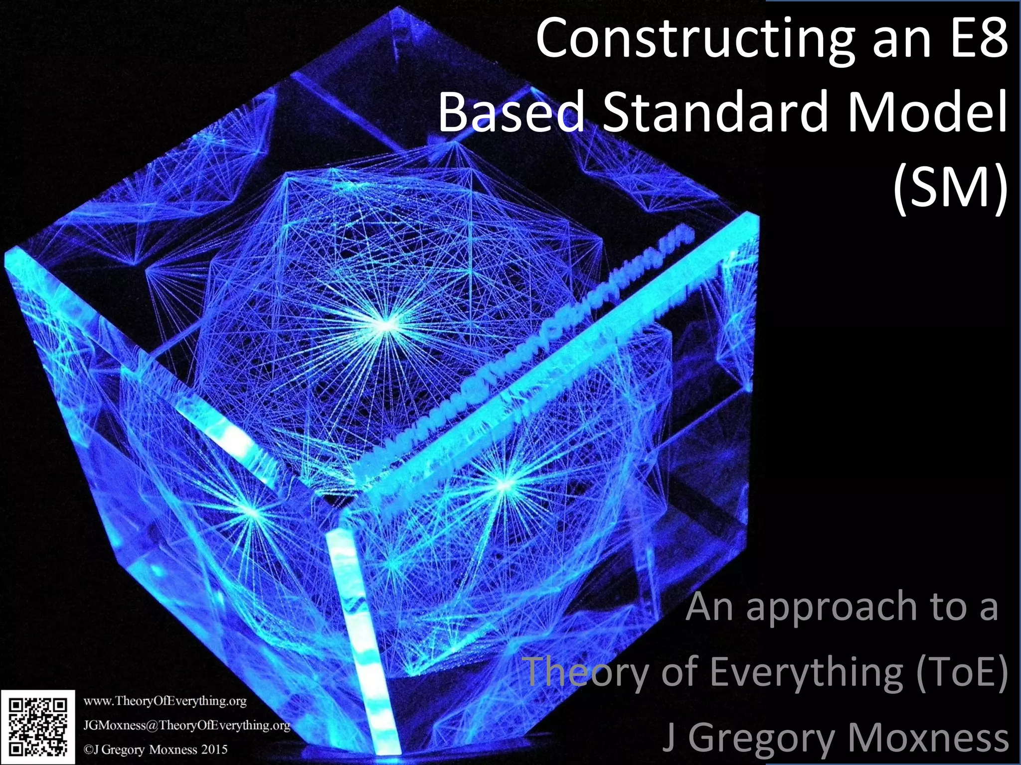 The document discusses constructing a Theory of Everything based on the E8 Lie group. It describes how the 240 vertices of the E8 lattice can be used to represent fundamental particles and forces. Fermions such as leptons and quarks are assigned to 192 vertices, while bosons like gluons and electroweak bosons are assigned to the remaining 48 vertices. The 16 vertices corresponding to the generators of E8 are excluded and proposed to represent yet undiscovered particles. Symmetries of the model are explored through color, generation, and other trialities that rotate particles within the E8 structure.