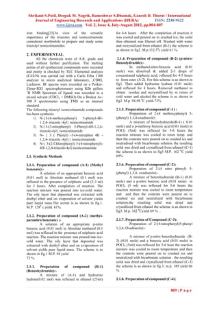 The document details the synthesis and characterization of various N-(3,5-substituted)-4N-1,2,4-triazole-4-yl isonicotinamide derivatives through reactions involving substituted benzohydrazides and benzoic acids in the presence of phosphorus oxychloride and dry pyridine. Characterization of these compounds was achieved using IR, 1H-NMR, and mass spectrometry, with reported yields and melting points. The study highlights the antimicrobial properties and broad biological applications of the synthesized triazole derivatives.