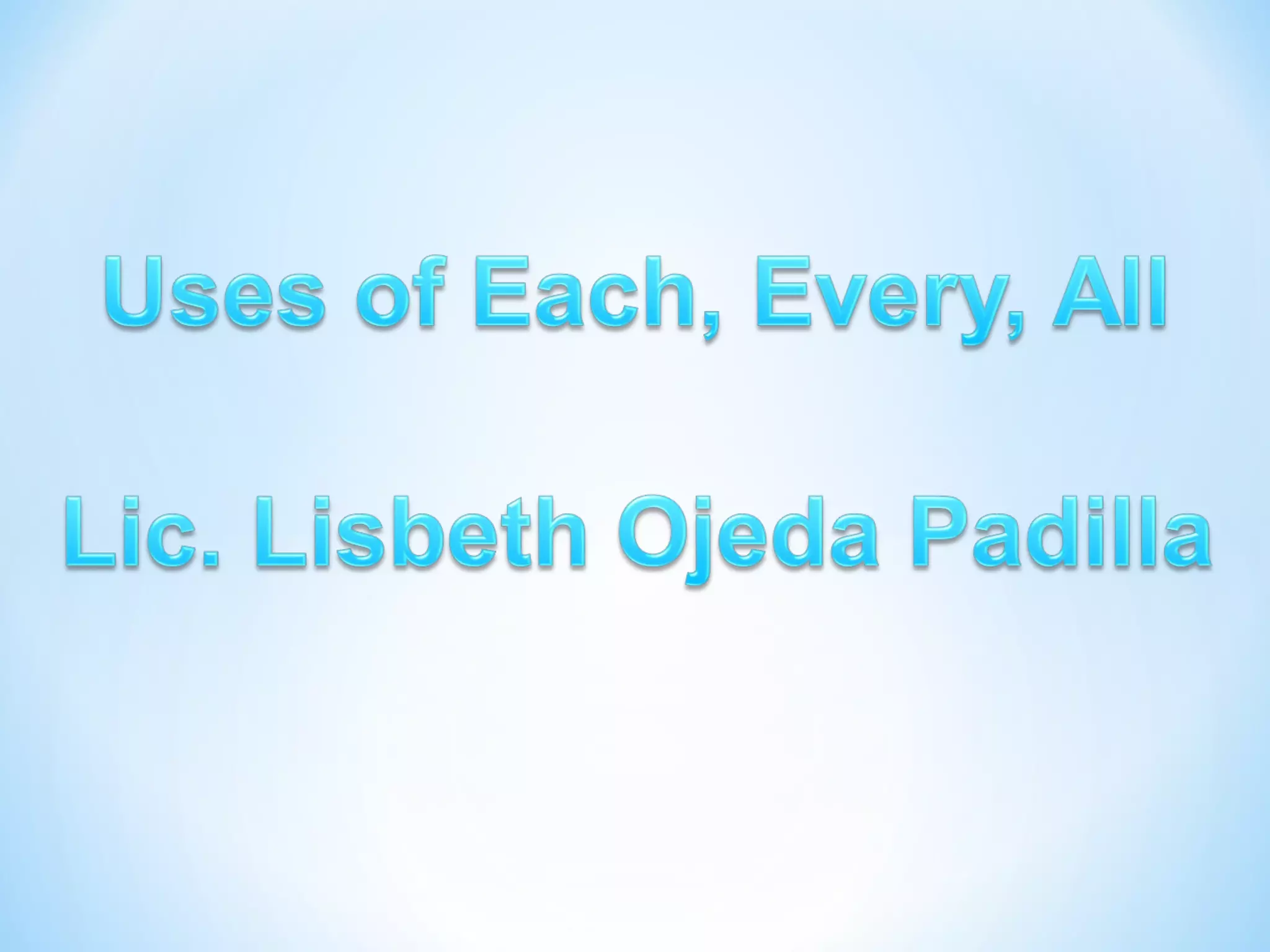 The document discusses the differences between the words "each", "every", and "all". It provides examples of how each word is used, specifically noting that "each" is used for individual items one by one, "every" refers to things as a group or all collectively, and "all" can be used with both countable and uncountable nouns. Key structures that differ for "each", "every", and "all" are outlined.