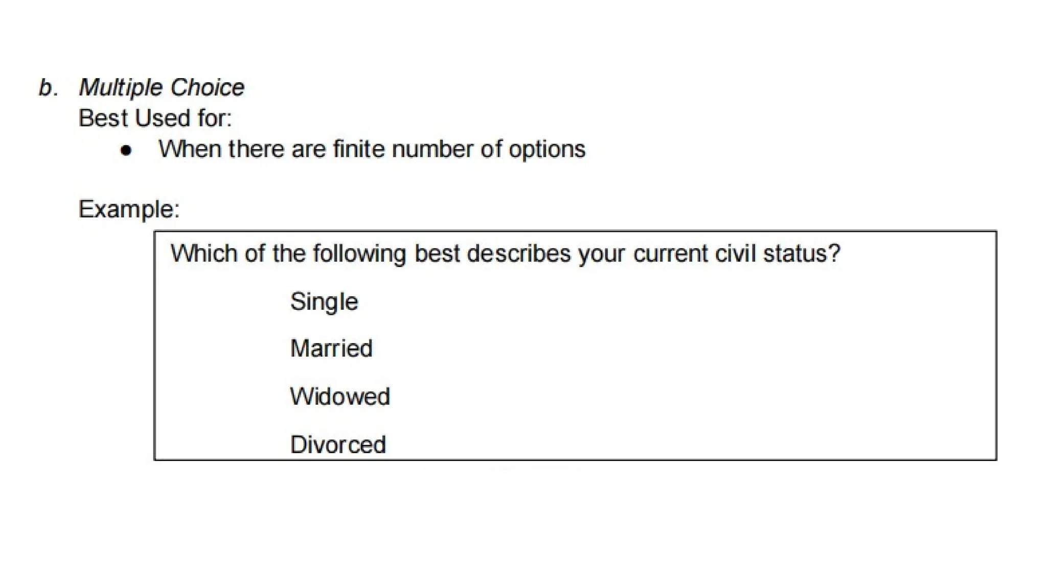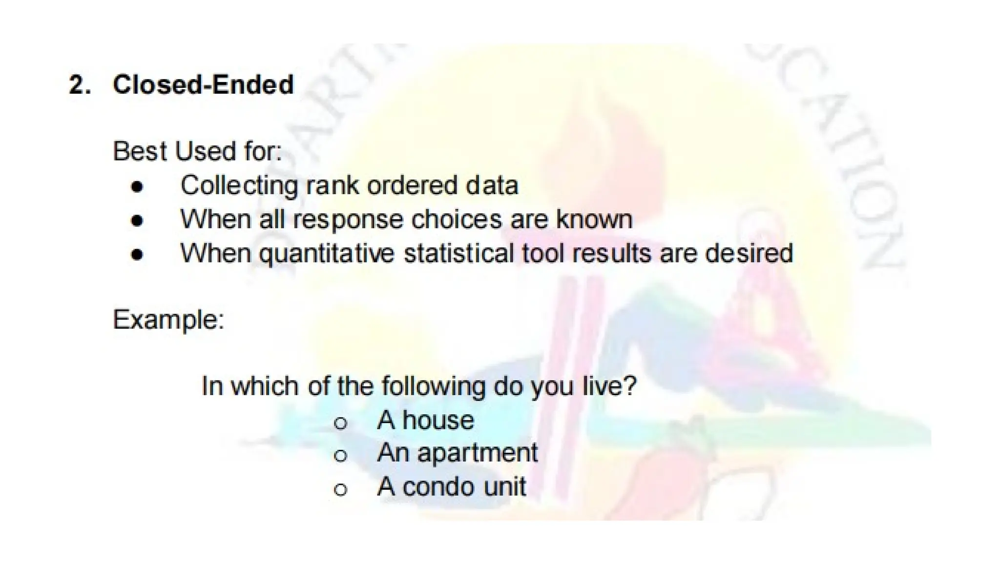 The document outlines a survey questionnaire focused on personal preferences and habits, featuring questions about superpowers, favorite foods, study music, and dream jobs. It includes guidelines on how to design effective survey questions, emphasizing clarity, neutrality, and the proper use of open-ended and closed-ended formats. Key considerations addressed include avoiding leading questions, minimizing presuppositions, and ensuring clear and understandable wording.